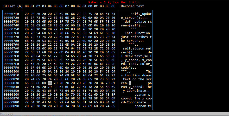 PyHex is a simple python hex editor for the terminal