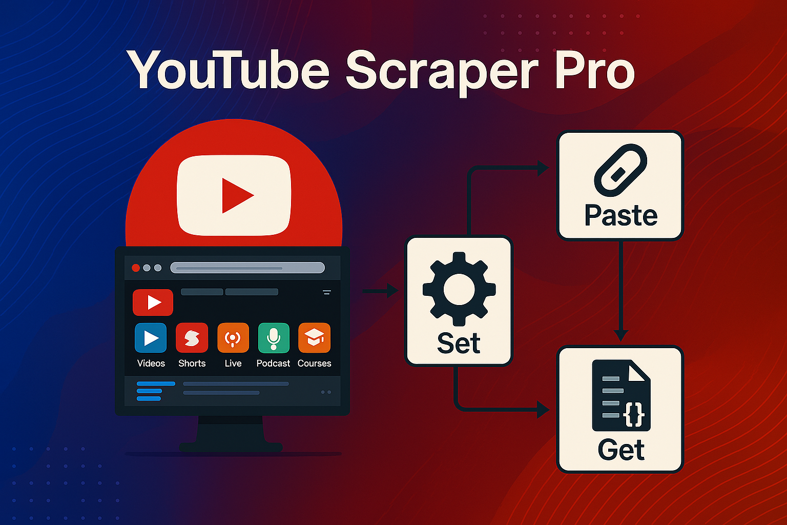 YouTube Scraper Pro extracts comprehensive data from ALL YouTube content: Videos, Shorts, Live streams, Podcasts, Courses, and full Channels. Process playlists and batch requests with ease. Perfect for researchers, marketers, and content creators. It also recognizes and processes smart keyword patterns like #hashtag and @channelname, making it even easier to target specific content from YouTube.