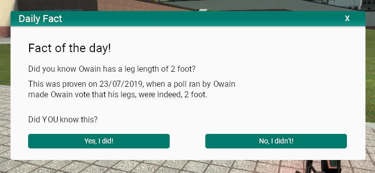 MatLib.Text(frame, frame:GetWide() * 0.1, frame:GetTall() * 0.2, "This is an example frame with example text!")It's about as easy as that. If you need any more help, you can view cl_example.lua and get more insight into it.