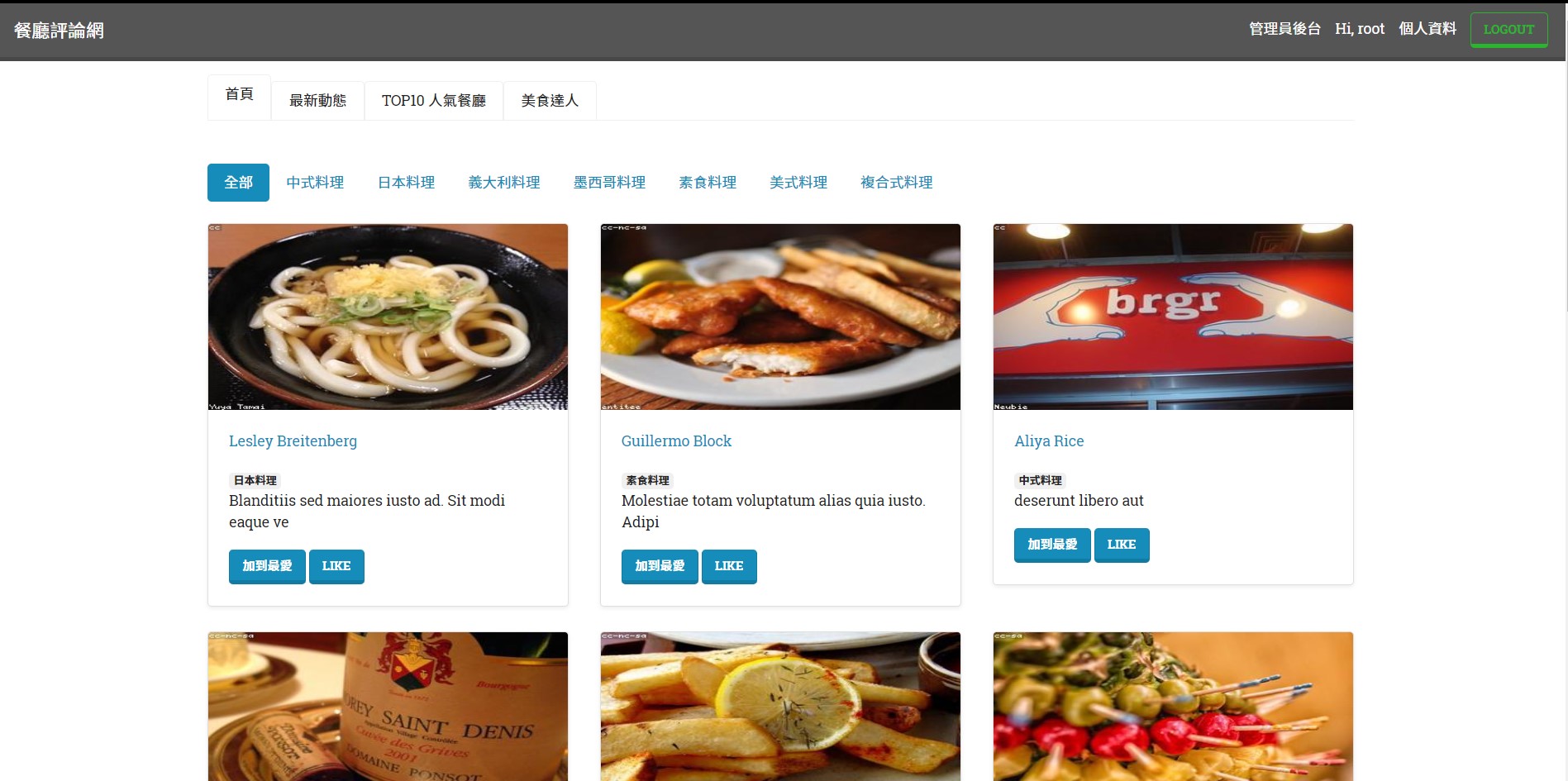 2. 使用者可以瀏覽所有餐廳,並用分類進行篩選