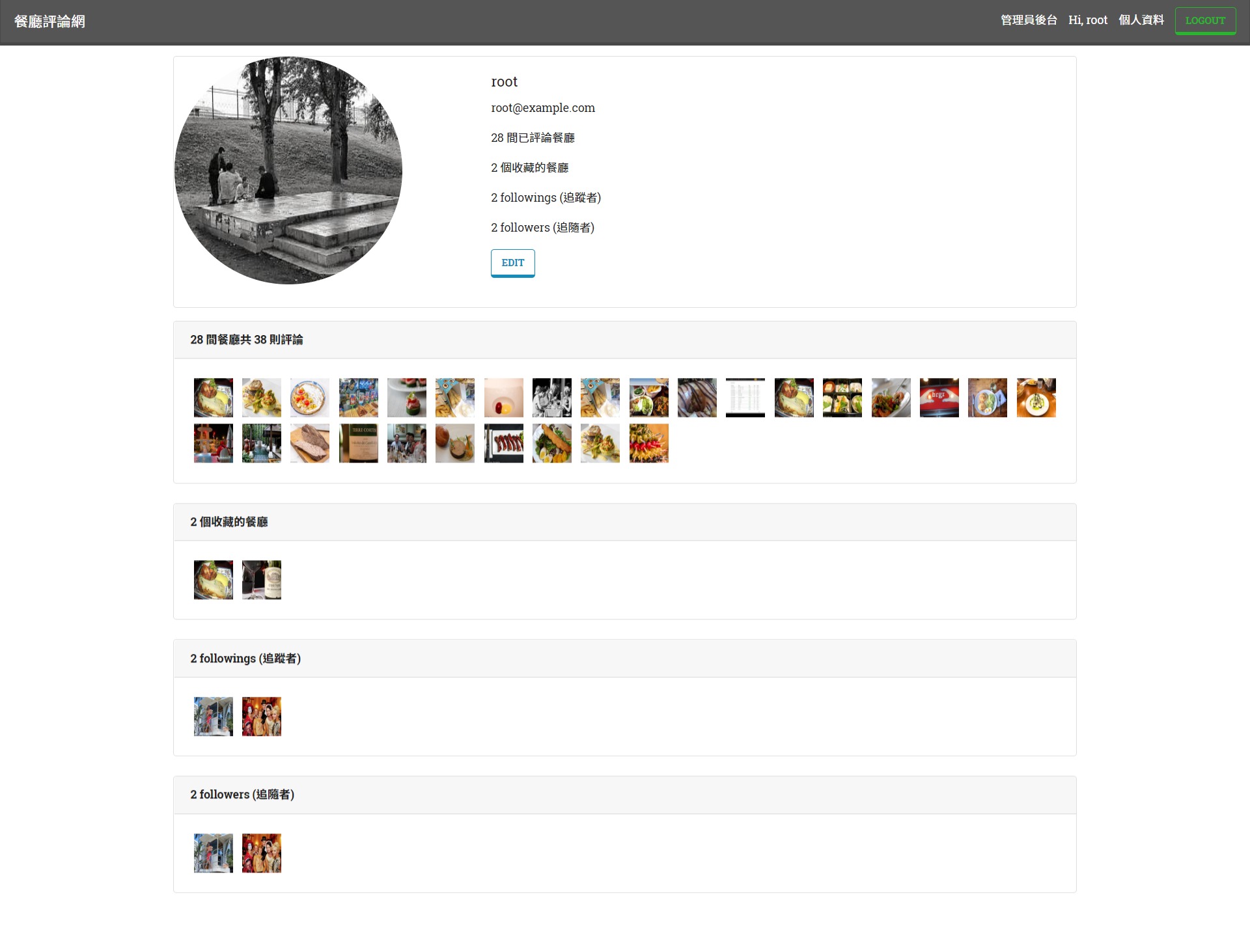 一個使用 Node.js/Express + MySQL/PostgreSQL 打造的美食餐廳評論網站,部署於 Heroku,並建立可供前端使用的 API。
