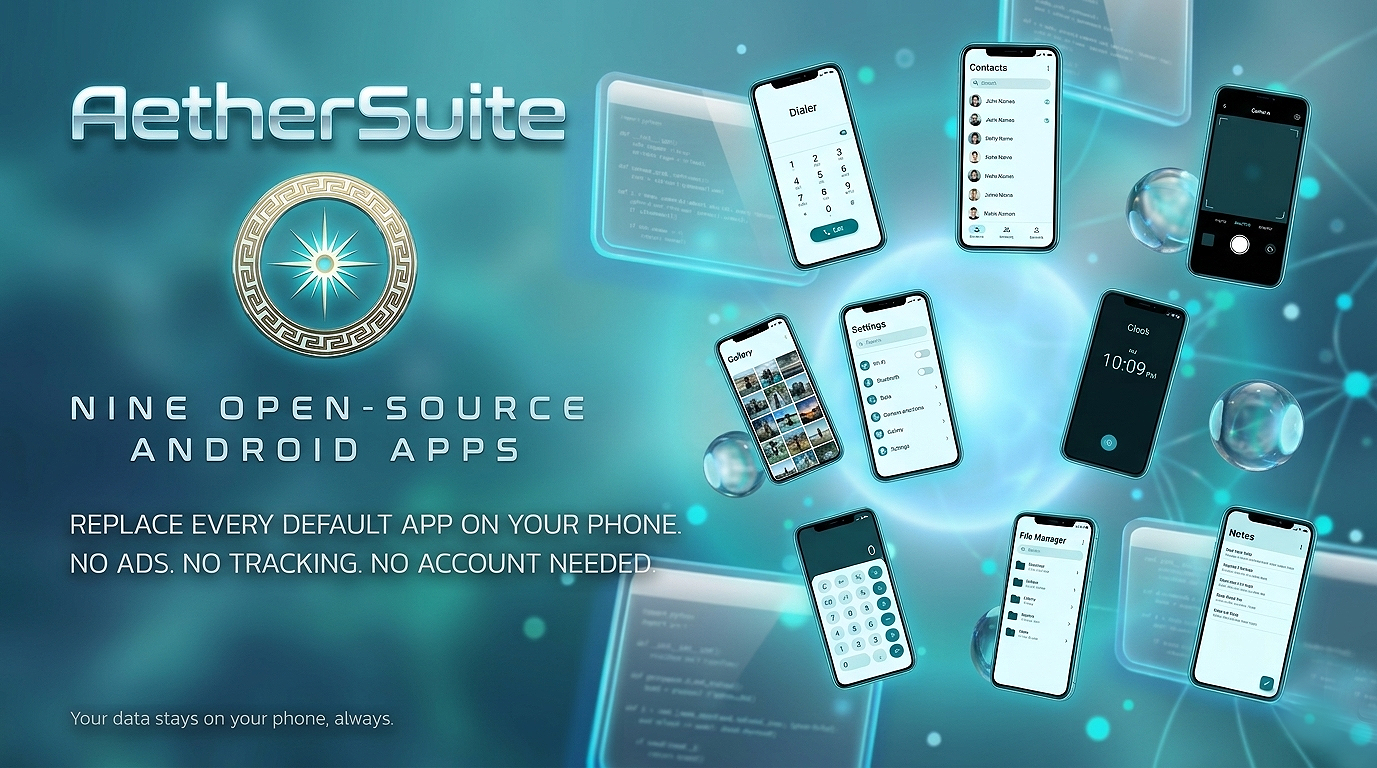 The AetherSuite software suite : the 9 open-source Android applications were offered to : e Foundation / Murena (https://e.foundation/) - Jolla / Sailfish OS (https://sailfishos.org/) - Punkt MC03 (https://www.punkt.ch/en) in March 2026.