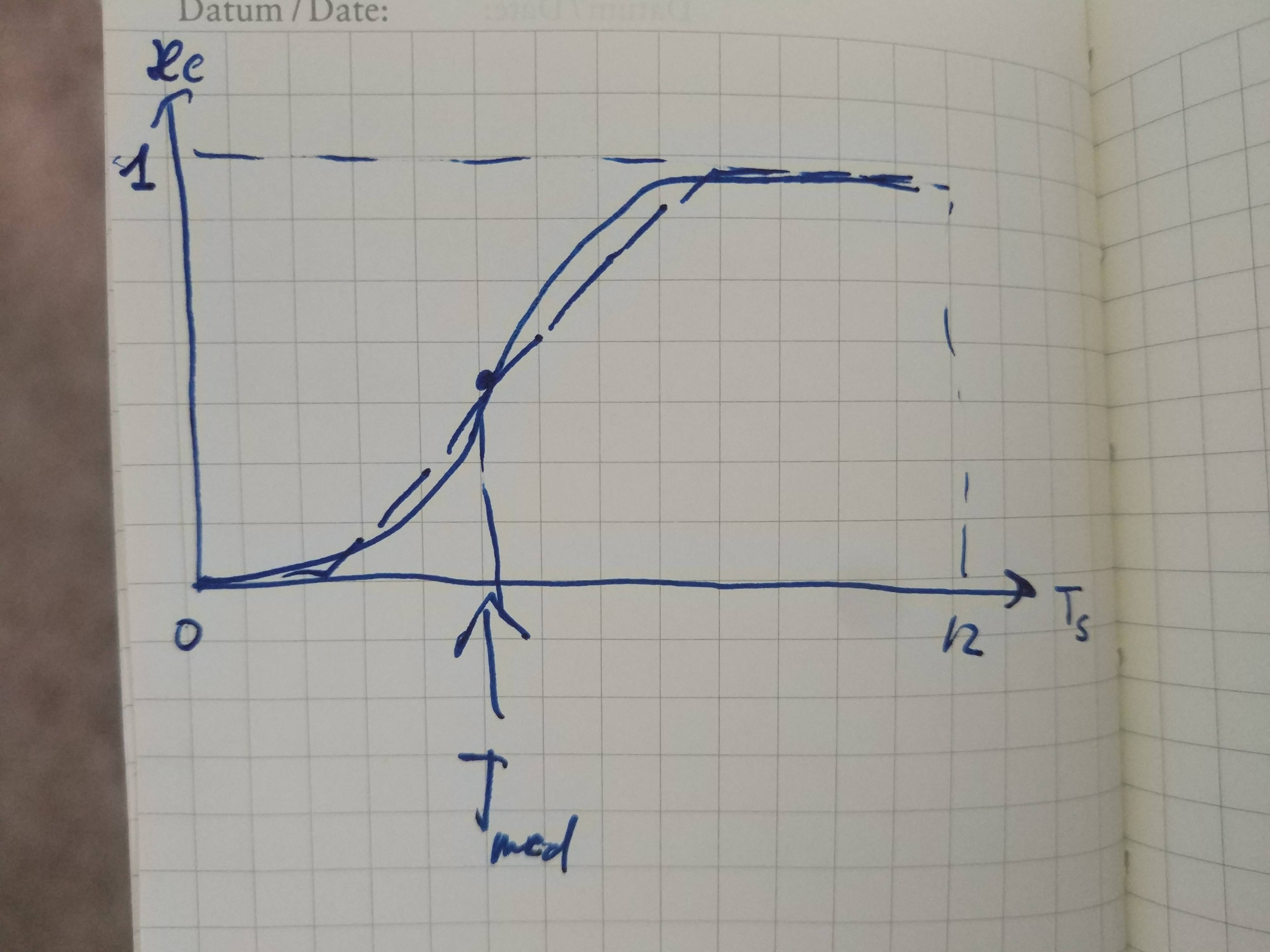 More than that. It could well be a cumulative normal distribution (with mean(Ts) for the center and std(Ts) for the width), approximated with linear clipped at the top (1) and bottom (0, or maybe some min_compensation.
