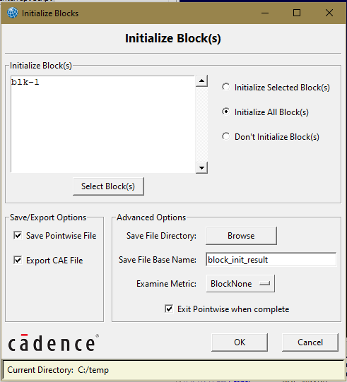 - The default base name is block_init_result, but can be changed by entering the desired base name in the Save File Base Name field.